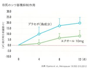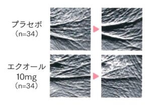 エクオール3か月摂取により、閉経後の女性で目じりのシワの面積が抑えられた。